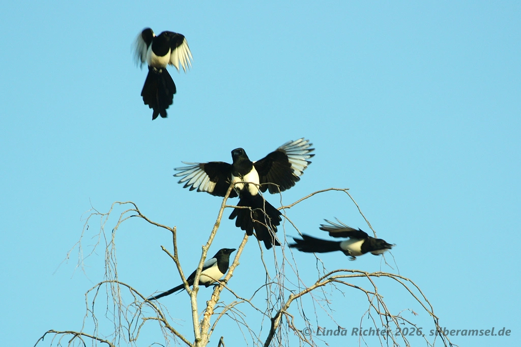 Notiert habe ich jede Sichtung einer Art pro Tag. Oder anders ausgedrückt, ich habe die Anzahl der Tage gezählt, an denen ich eine Art gesehen habe. Das heißt, wenn über den Tag verteilt mehrmals Elstern auftauchten, dann habe ich trotzdem nur einen Strich für diesen Tag gemacht. Die Anzahl der Individuen je Art wurden nicht erfasst.
